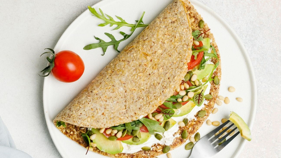 А пока сделаем начинку. Для начинки можно взять все, что есть у вас дома под "рукой" (любой сыр, красную рыбц, ветчину, колбасу, бананы и т. д.). Салат айсберг помойте под проточной водой, обсушите и нарежьте (салат можно взять любой). Возьмите моцареллу и нарежьте на средние кусочки. Огурец помойте под проточной водой, обсушите. Нарежьте огурец соломкой или другим удобным способом. Сложите всю начинку в одну просторную миску, посолите по вкусу и перемешайте (можно смазать овсяноблин соусом, натуральным йогуртом или сметаной). Разогрейте сковороду на сильном огне, слегка смажьте маслом. Уменьшите огонь до умеренного и вылейте на сковороду яичную смесь. Когда блин снизу начнет схватываться переверните его. И жарьте до готовности. Можно прям на сковороде на одну половину выложить начинку, а сверху прикрыть второй половиной.